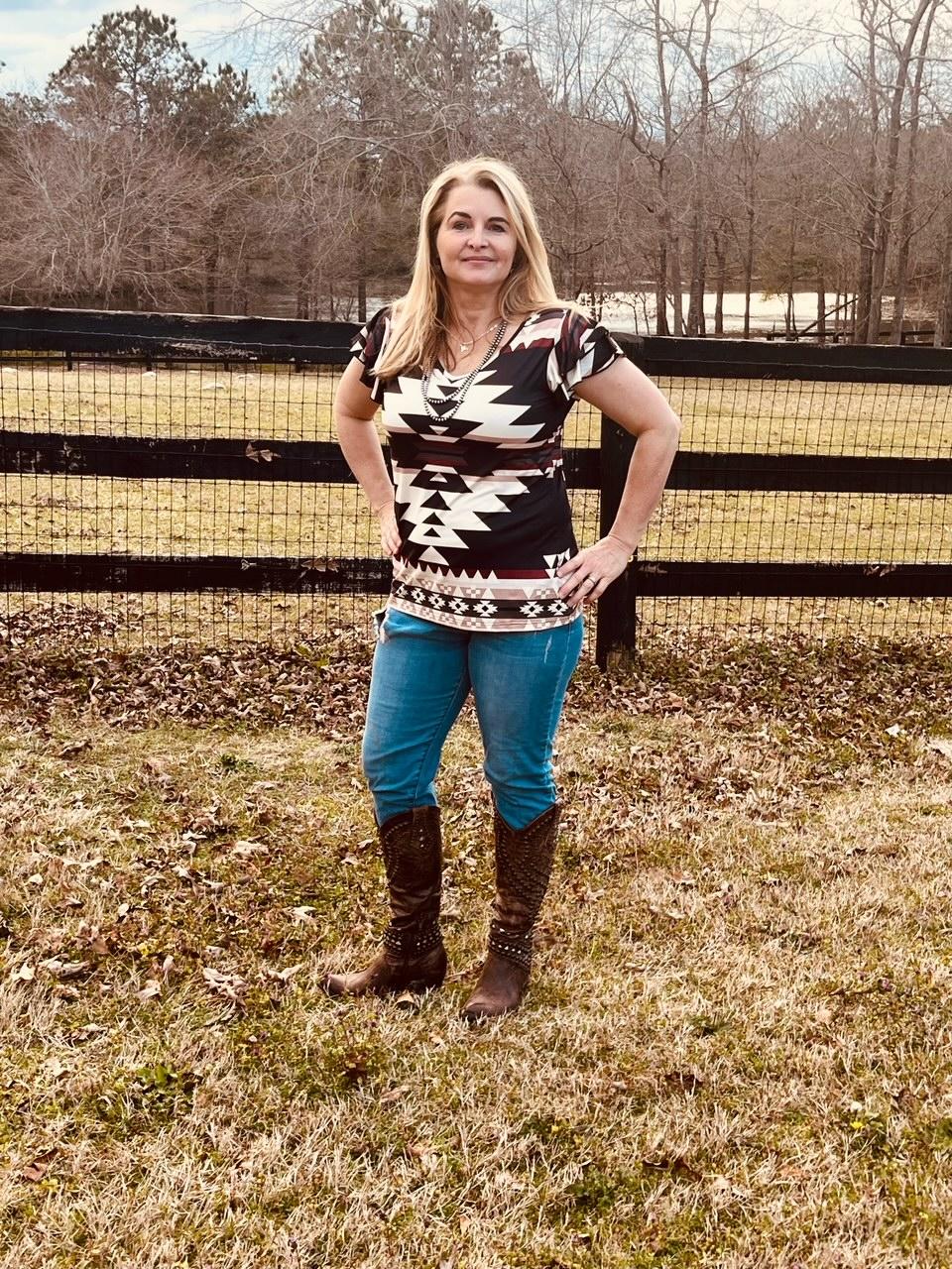 The Graceland top is a flattering top that is well suited for a night on the town but can also cross over to a great trail riding shirt. Add some class to your outfit with the Graceland by Sterling Kreek. Beautiful and so much fun to wear. Absolutely the most comfortable line of shirts available.