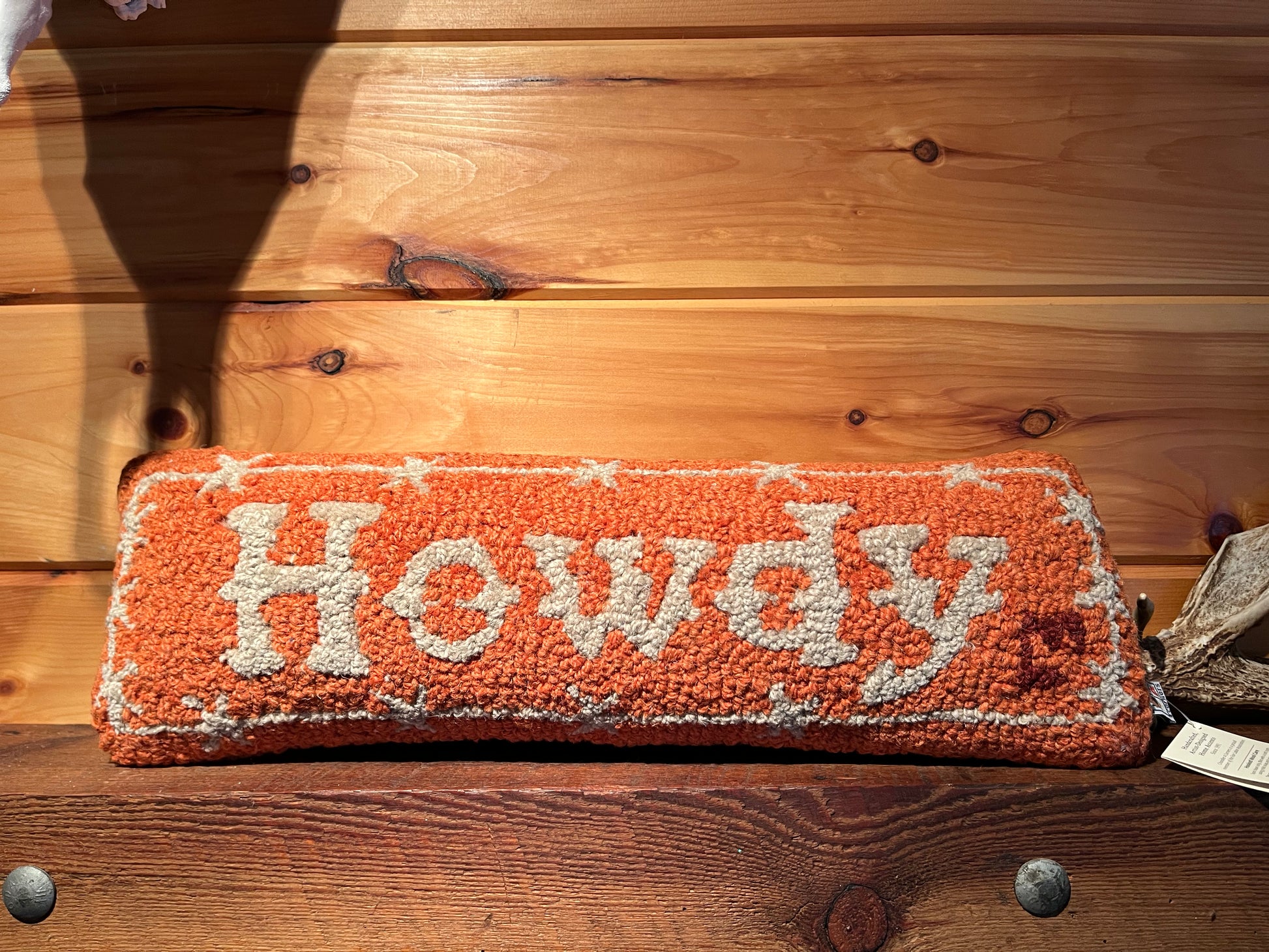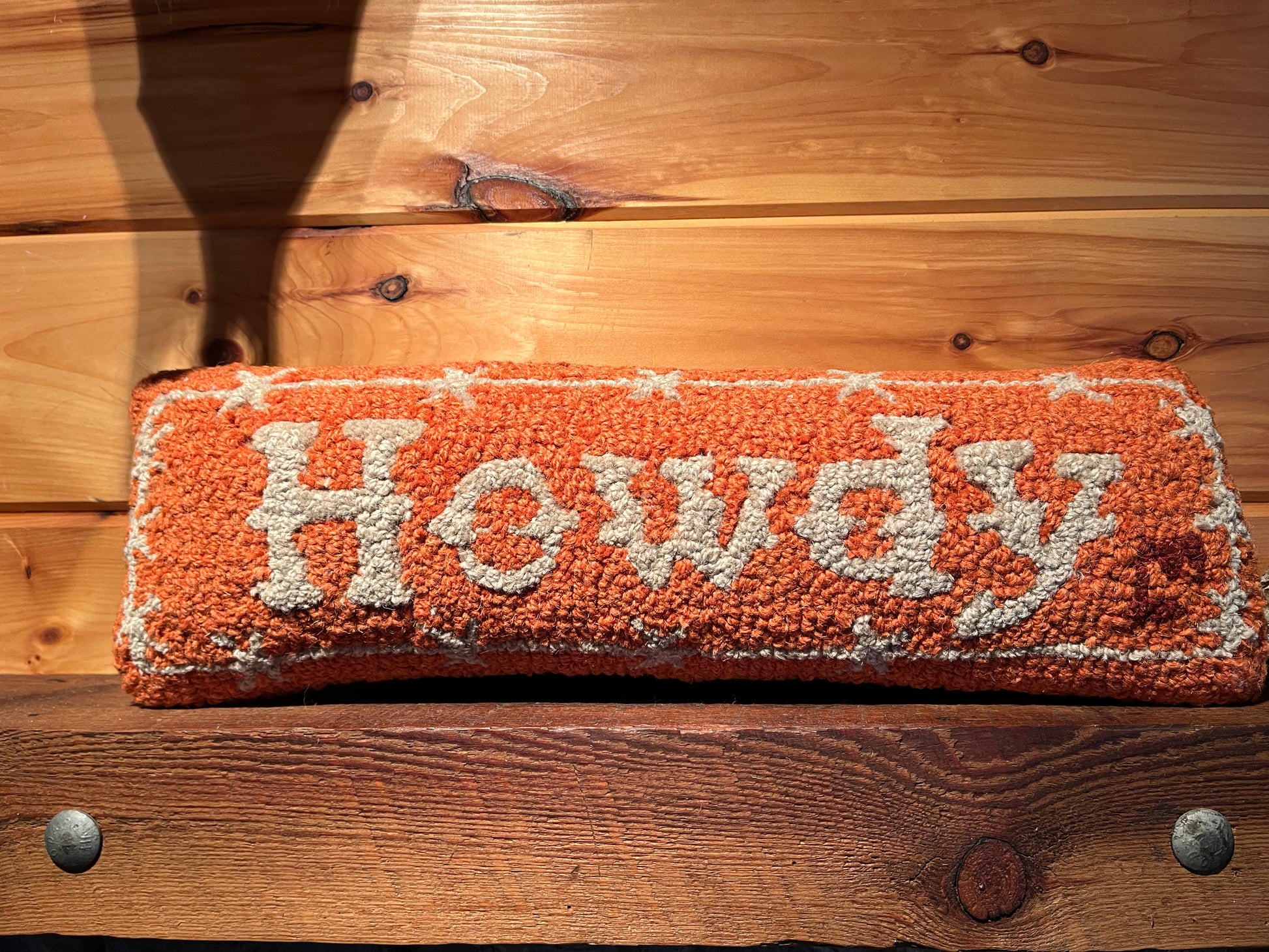 Welcome guests with a friendly "howdy" using this rustic throw pillow. The beautifully made design and warm colors will add a welcoming touch to any room.