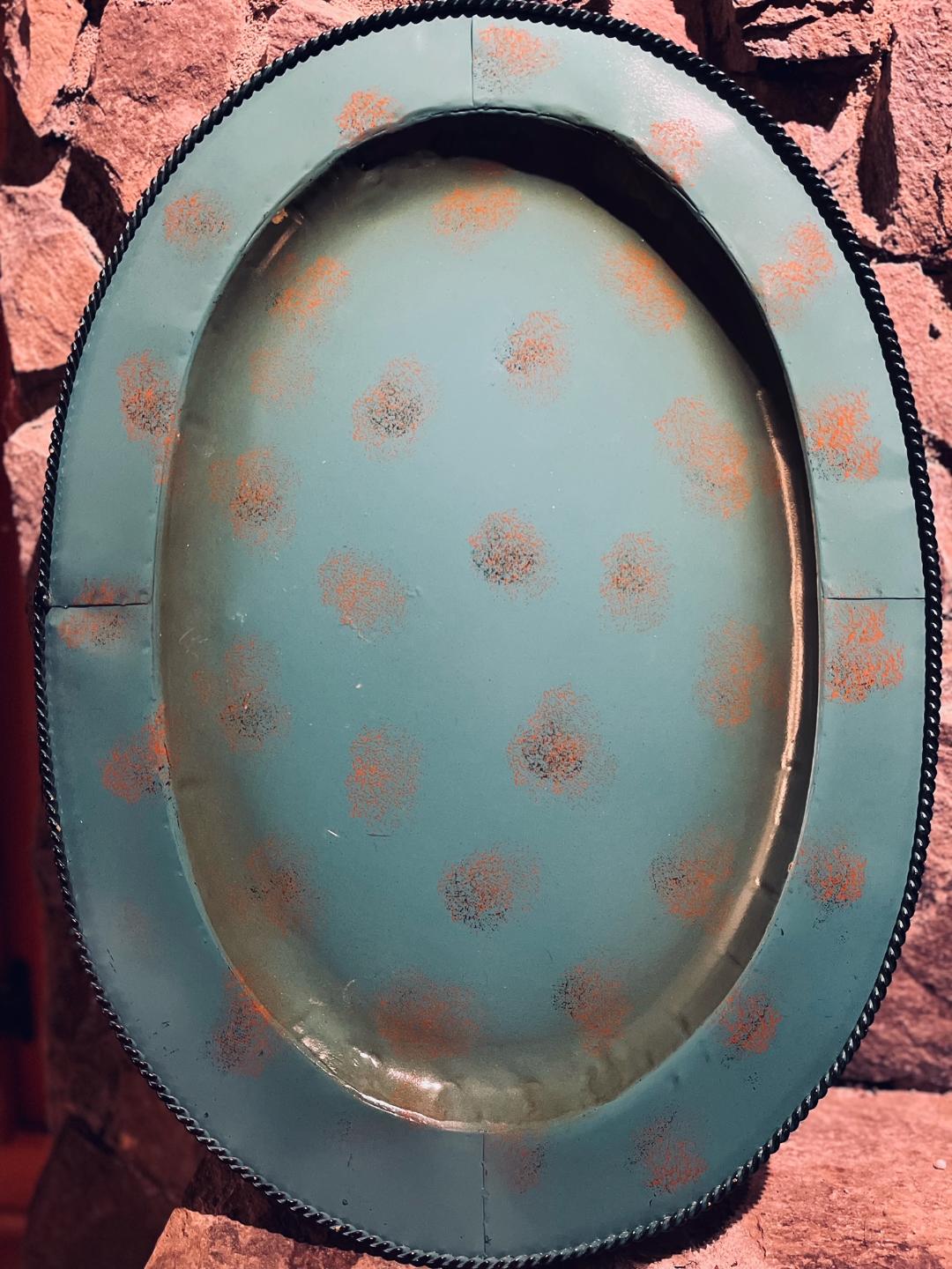 A large serving tray in turquoise patina finish goes excellently with our turquoise patina collection. Beautiful to display on tables or use for special occasions. Hand wash only no dishwasher please.